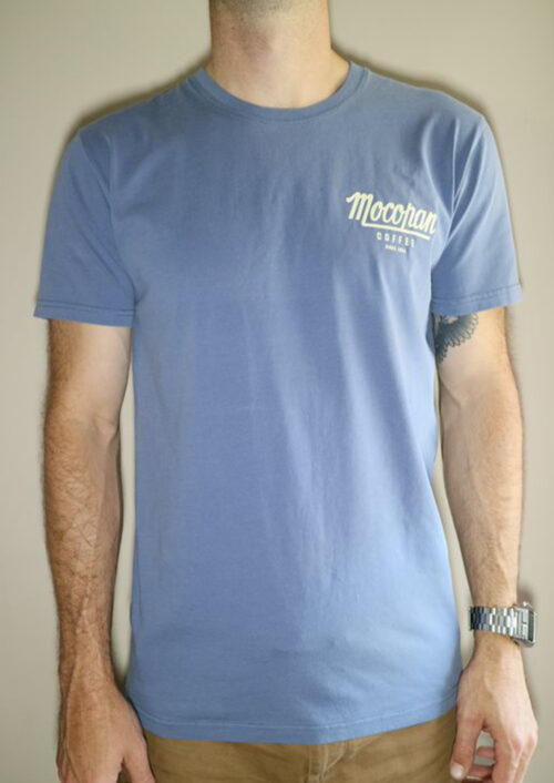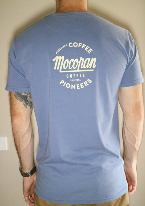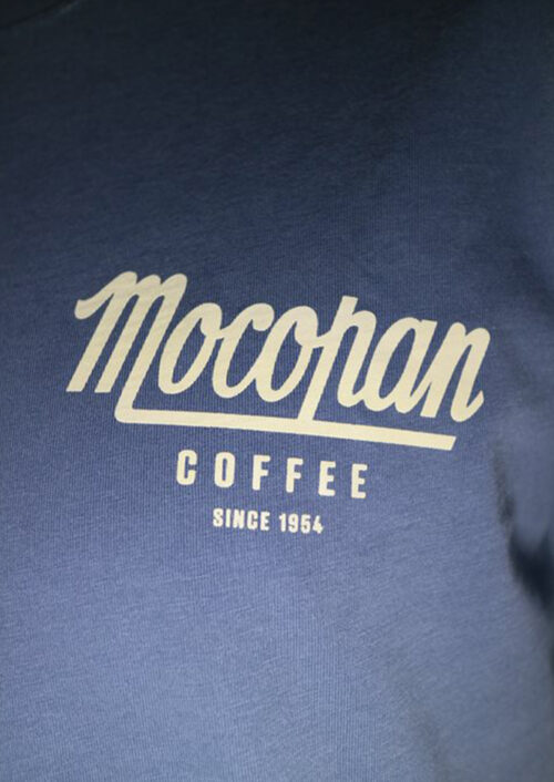 Mocopan Coffee unisex Tee in blue.